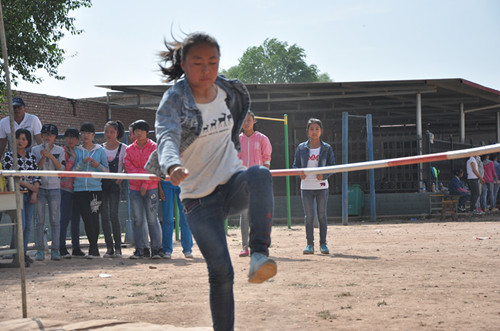 跳高比赛在第二天的下午,全年级参加比赛的女生有十五个,每个人有三次机会,三次要是跳不过去就要被淘汰了。