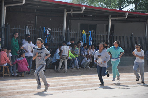 运动会的时候每个同学都参与在其中,有比赛项目的同学参加比赛,没有比赛项目的同学给他们加油鼓劲。