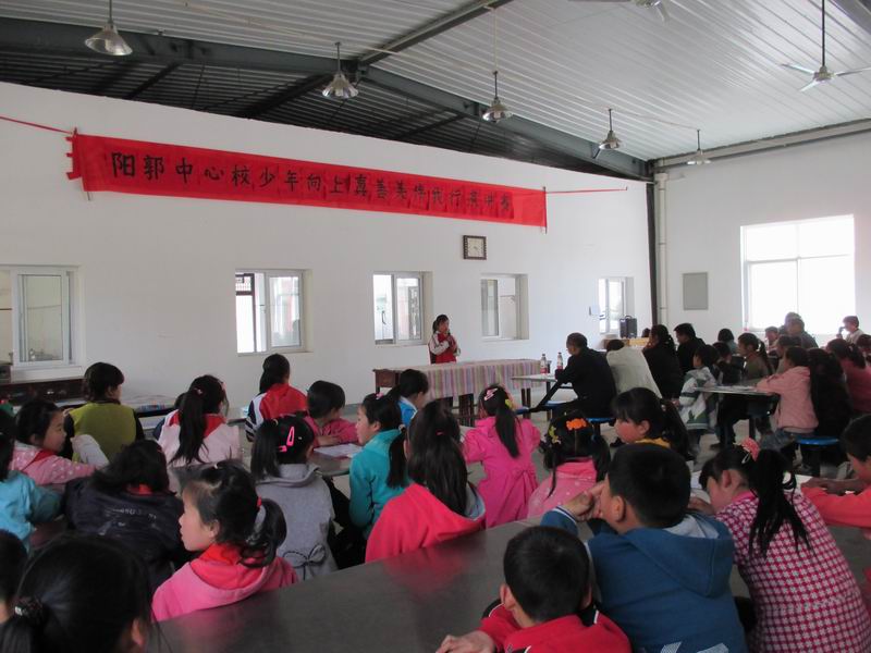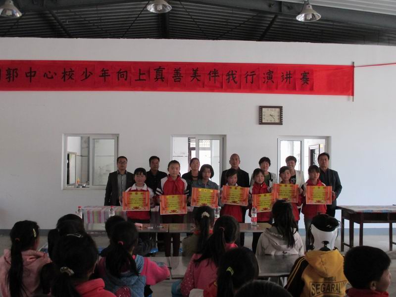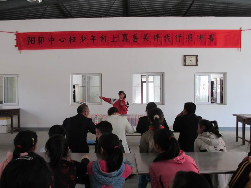 2015年4月16日下午,在阳郭镇中心校的组织下,来自阳郭镇各小学的7名选手在我校进行了"少年向上,真善美伴我行"主题教育演讲选拔赛。
