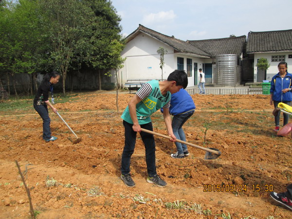 首先,我们几个女生去拿了盆子,然后又接水给土地浇水 ,方便男生们挖地松土。总共有三个男生在挖地,我们浇完水之后就在旁边看着男生挖地,等着他们挖完我们好播种。过了一会儿,我实在看不下去了,他们挖的是什么啊?我便夺过锄头,像女汉子一样开始卖力的挖起来,魏老师也参与了进来。挖到一半时,我突然发现魏老师满头大汗,心里边有一种无法用语言来表达的感动,只觉得她像一颗金子在闪闪发光。