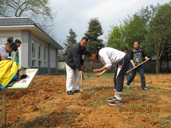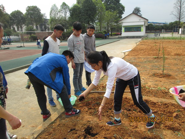 挖好坑之后,有一个女同学在魏老师的指导下负责播种豆子,有两个同学去端来了肥料,我负责施肥,另外几个同学负责填土,很快,四季豆和红豆都种好了。我们又开始种黄豆,在我们正种的起劲的时候,校长走了过来,拿着锄头帮我们地。我感到非常惊讶,没想到堂堂校长居然会忙帮我们种黄豆,更何况他的动作非常熟练。有校长的躯身示范,我们干的更加卖力,虽然劳累,却更加开心,不一会儿,黄豆也种完了,最后就是给种好的豆子浇水。