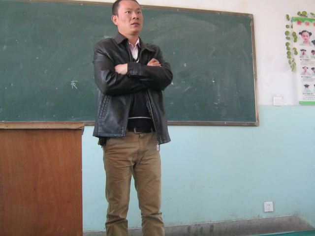 个子高挑,长的细长细长,却有很大的力量,眼睛大大的,头发短短的,他就是我们的班主任,也是我们的数学老师。