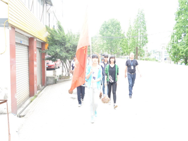 离开小区后,我们一路边欣赏风景边你说我笑,并没有因为天气的炎热和路程的遥远而逗留,在行进的过程中,刘老师和吕主任特别担心我们的安全,他们俩一前一后,我们也知道人多,安全是最重要的,所以并没有你追我赶。当路程走到一般的时候,我真的快累趴了,真想倒在地上睡一觉,又非常渴,但我不想因为我的原因而耽误大家的时间,而且我们都要赶回去上课,一些同学也十分关心我,帮我拿着工具,所以我也只好一直坚持着。