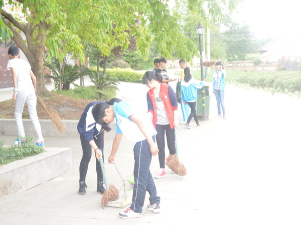 下午,初一至初三个派出六位同学跟刘老师和吕主任去参加校外志愿劳动,我也被叫去了。我们各自拿了打扫的工具然后排好队出了校园。天气十分炎热,我们先到了庙峰小区,然后就开始认真的打扫起来,小区里有一个小小广场,那里的卫生还可以,但是有许多小草从地砖缝里长了出来,非常不美观,我们在刘老师和吕主任的带领下彻底的打扫了一遍。太阳无情的照着我们,我们早已汗流浃背,但没有一个人偷懒,都非常认真的在打扫。