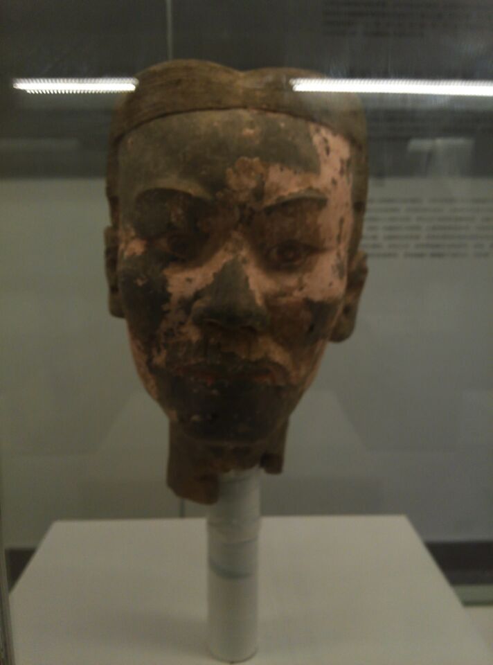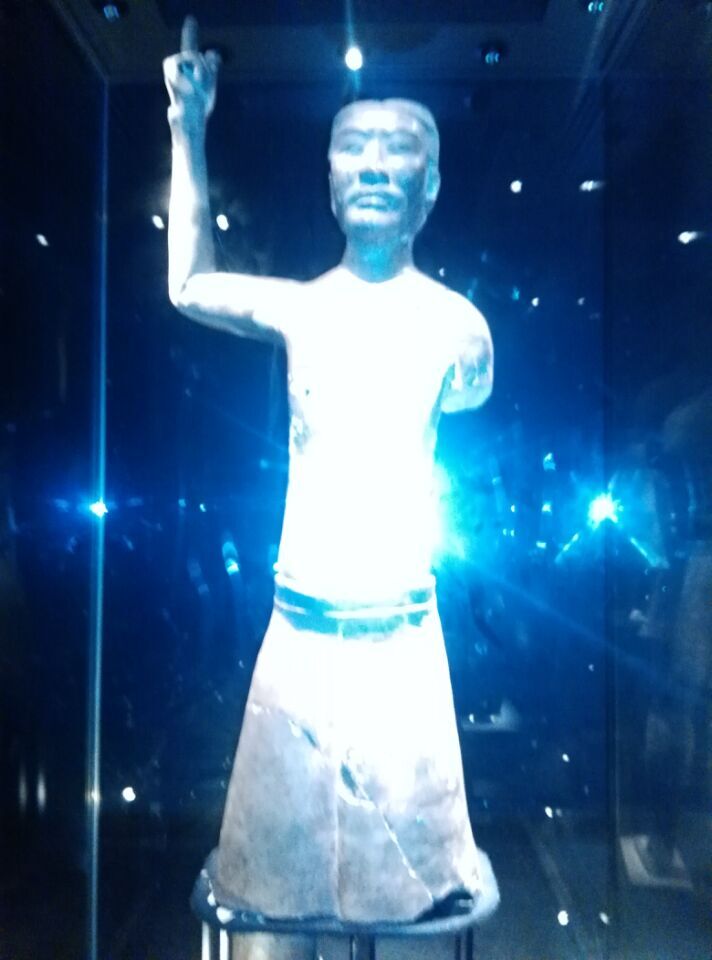 除了威震四方的一地下军阵,在秦始皇陵陵园内有着一支"地下娱乐杂技团队",这就是"百戏俑坑"。此次新发现的陶俑均分布在第三过洞,陶俑大部分上身不穿衣服,只有两件上身穿着衣服,衣服上镶嵌着直径3.5厘米的圆泡,8个一排。每件陶俑都有彩绘,衣服上的颜色有红、紫、黑红相间的纹饰,肤色以粉色为主。从造型上看,此次新增的一种姿态为半蹲式。其中一件"巨人"俑非常夸张,不算头部,仅身高为2米2,脚长32厘米。"如果算上头部高度,这个陶俑身高就要达到2.5米,堪称秦代的巨人,这个陶俑脚掌也相对其他陶俑显得较大,换算到现在的概念大概有54码。