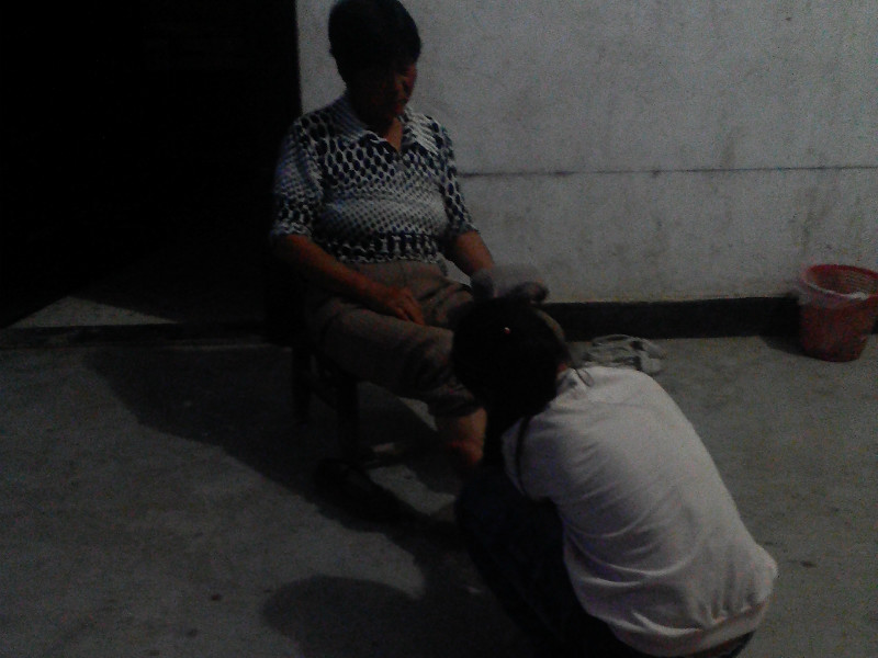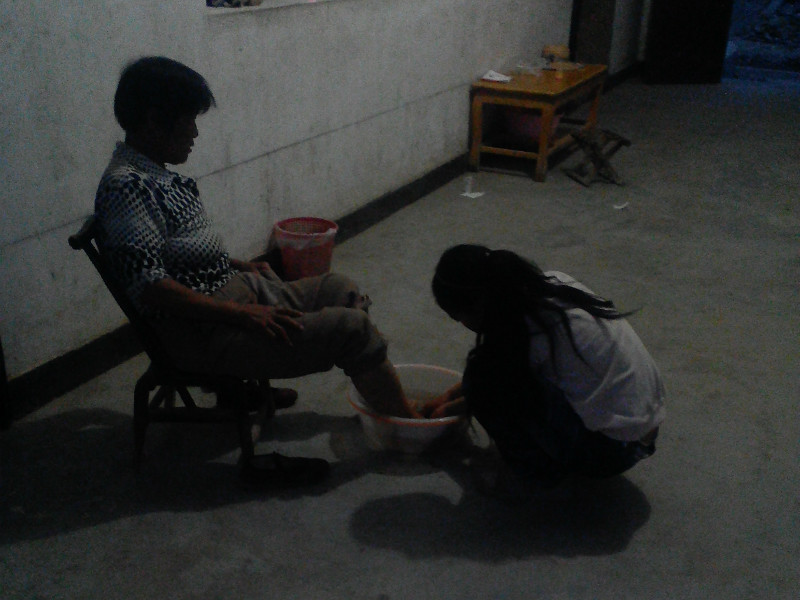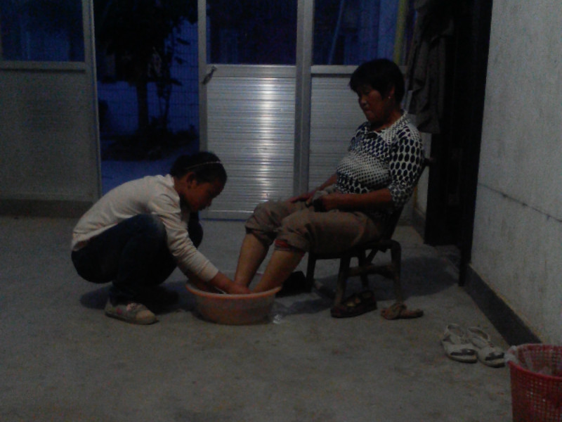 我就翻箱柜的收集洗脚用的东西。我先拿一个盆子,再拿一块洗脚布,准备好后我就在家里等候着奶奶回来