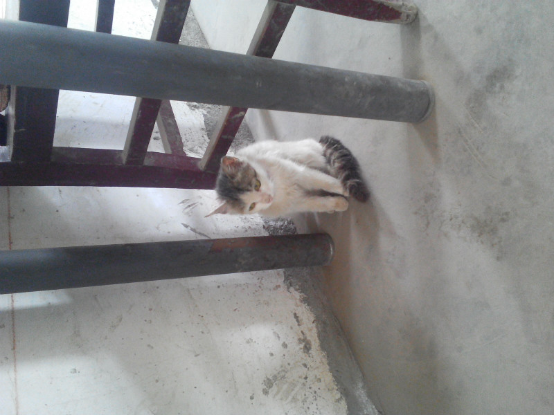 它是一只母猫,走起路来非常的优雅美丽,昂着头,翘着尾巴,在路上走来走去。