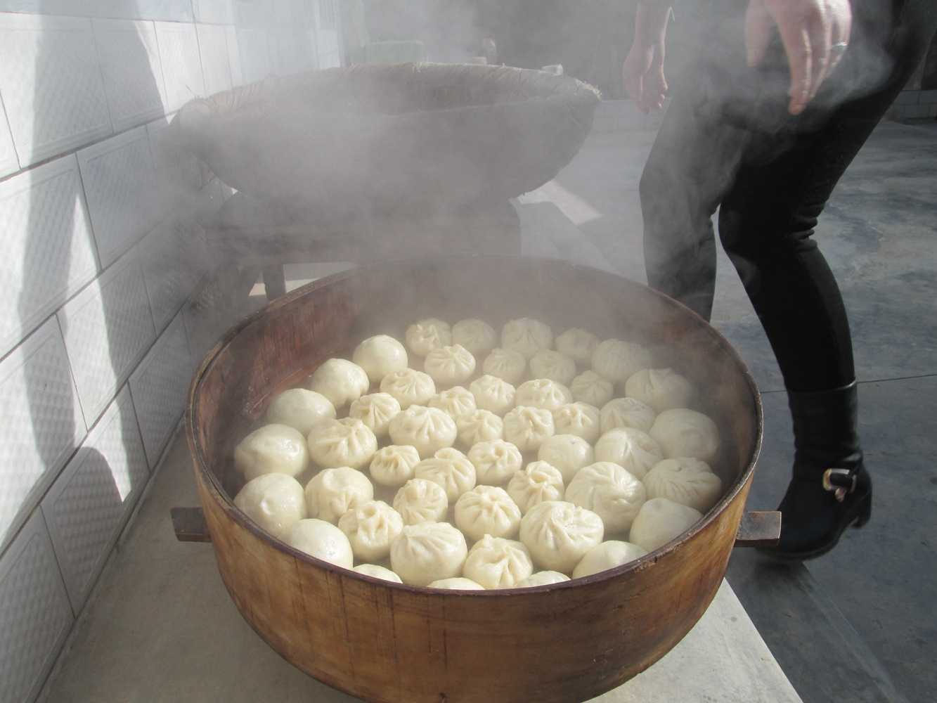 首先,我们开始蒸,我学着她们的样子,揉面,切成又圆又小的面团,然后拿在手里,用勺子把馅包进面团里,虽然我不会包,但我硬要掺和,终于包好了一个,可跟她们包的不一样,别提有多难看了,经过妈妈的改造,看起来才有了模样。