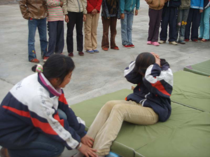 首先,是女生一分钟30个仰卧起坐达标,这对我们这些平时锻炼比较少的女生,可有点苦了。谁说不是呢?看,每个女生 脸上都泛起了红韵,像初夏的太阳,看到她们我们心中也不 免有些温暖了吧。紧张的数"一,二,三……."好了,终于结束了。