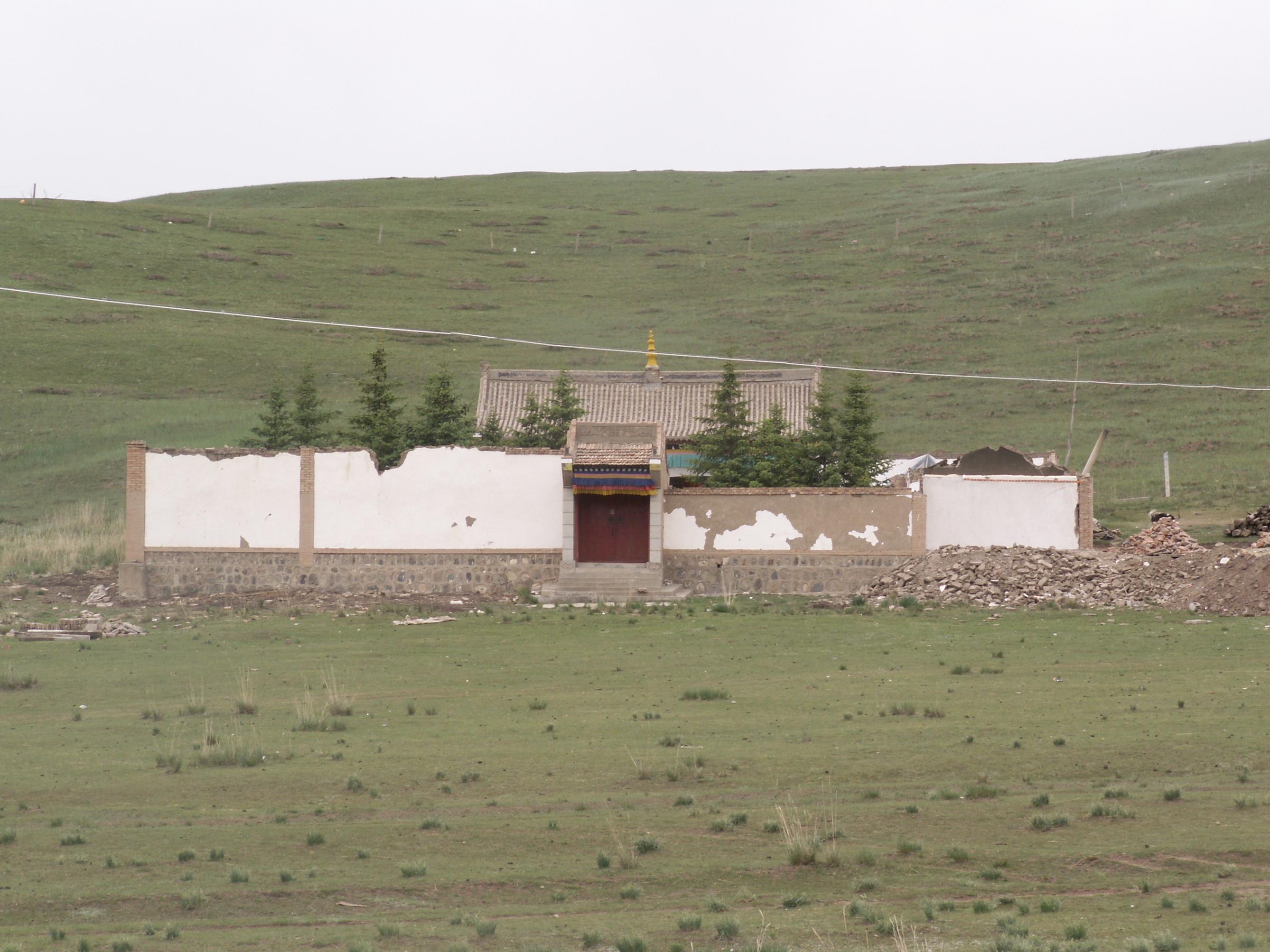 这是一座极其简陋的寺院,从我记事起,它一直就处在半山腰上,似乎已经遗弃。只有到每年赛马会上,寺院门口才会显得有些热闹,人们总会借次机会拜佛,烧香。不过遗憾的是很少有人知道它的名字。