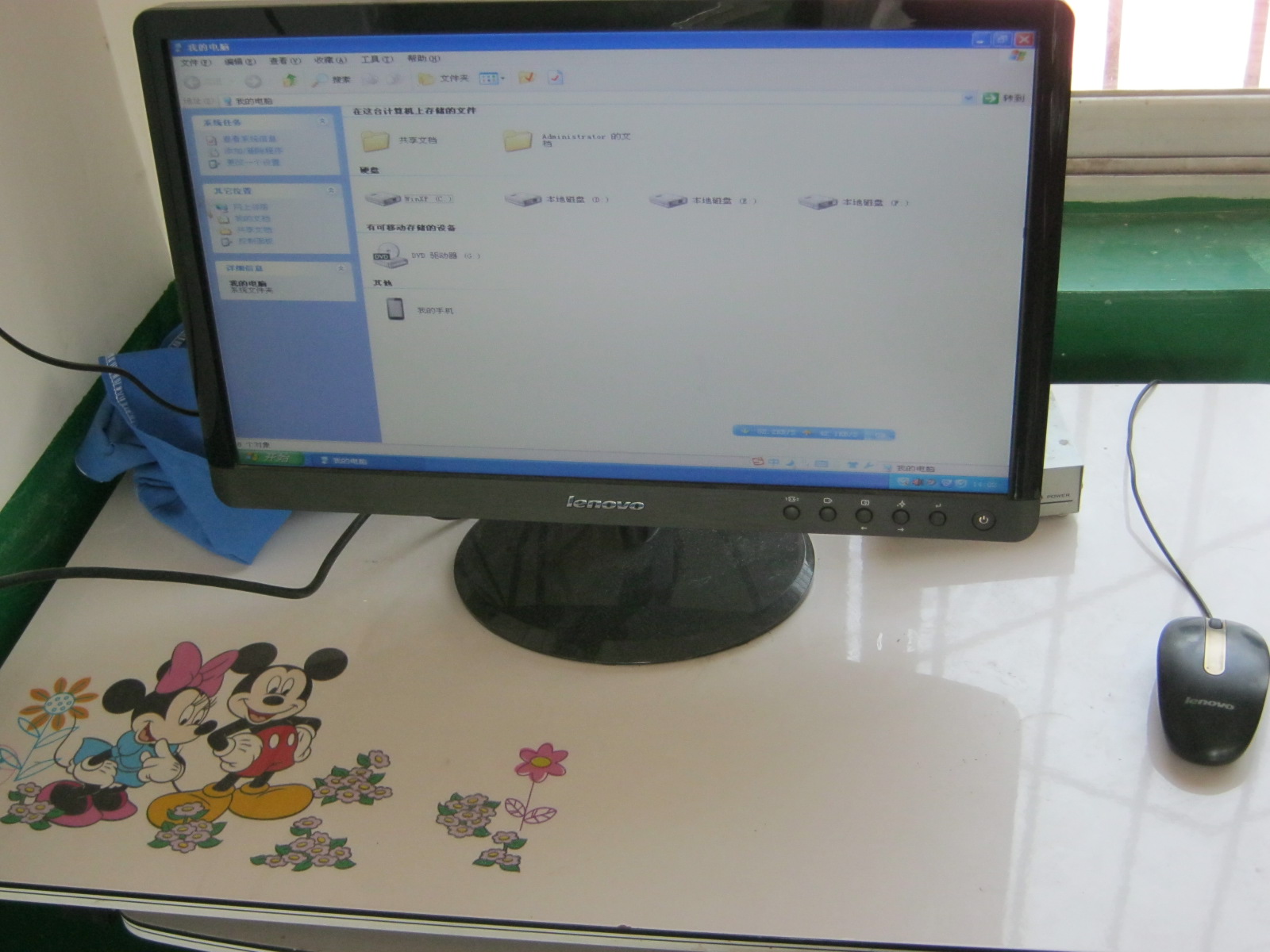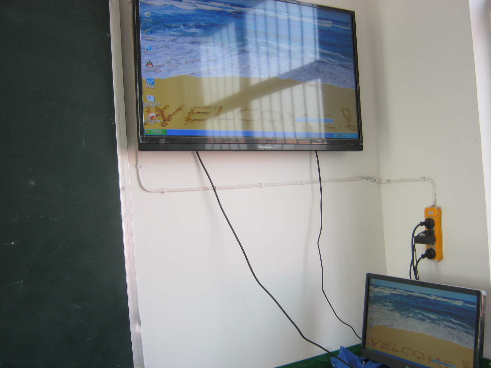 我们的"白板"比较简单,其实我们教室并没有白板,也没有投影。只有一台联想电脑和一台三十九英寸的液晶电视和十兆的光纤网络。当然这还需要一个视频转接器,它可以把电脑主机的信号同时接收到液晶电视和电脑屏幕上,使我们更清晰的看到老师上课演示的课件或习题。