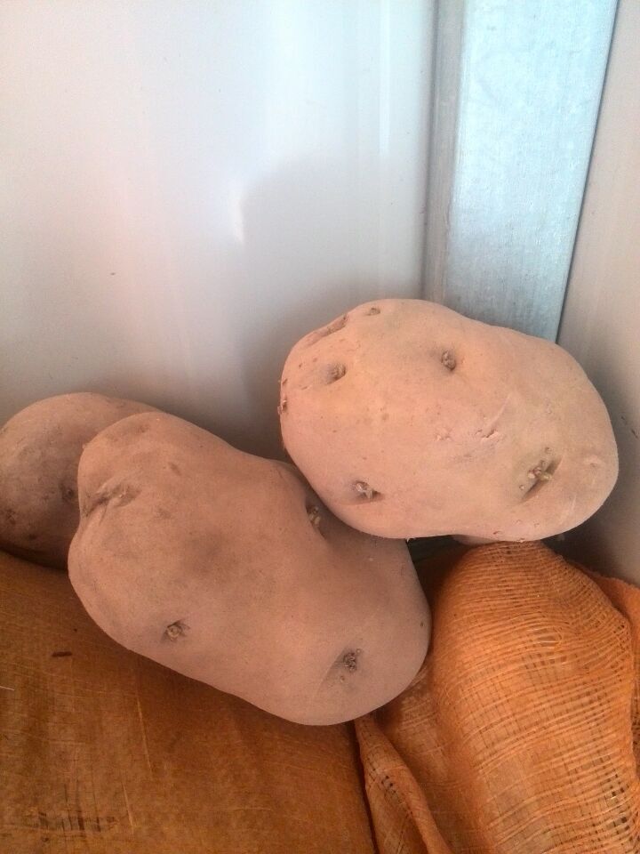 在每年春天的四月里,就会将土豆籽种在湿润的土地里。到了秋天就挖出来,种土豆是很辛苦的。一天要冒着炎热天来种土豆。