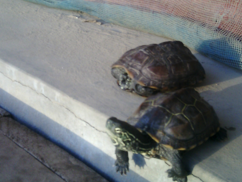 瘦高高和胖乎乎最爱吃小虾了,所以我时常会拿小虾逗一逗它们俩,瘦高高和胖乎乎只要一看见食物便会争抢起来;它们都非常喜欢吃小虾,吃的时候会用前脚把食物抓住,然后狼吞虎咽的吃下去。为了能让它们尽快的熟悉这个地方,我还在鱼缸里面放了一只田螺陪着它们,让它们一起快乐成长。 我喜欢我家的两只小乌龟"瘦高高"和"胖乎乎"