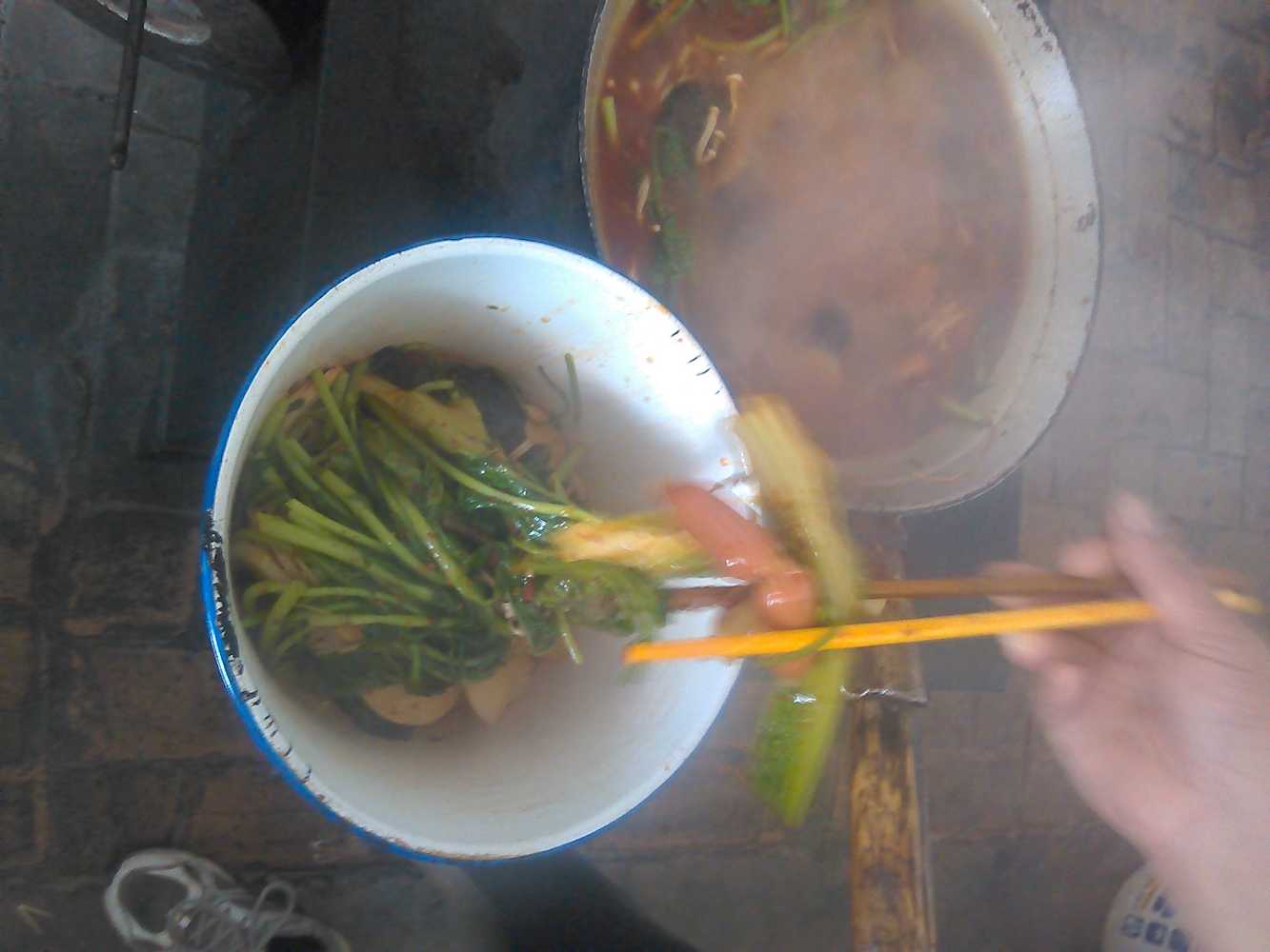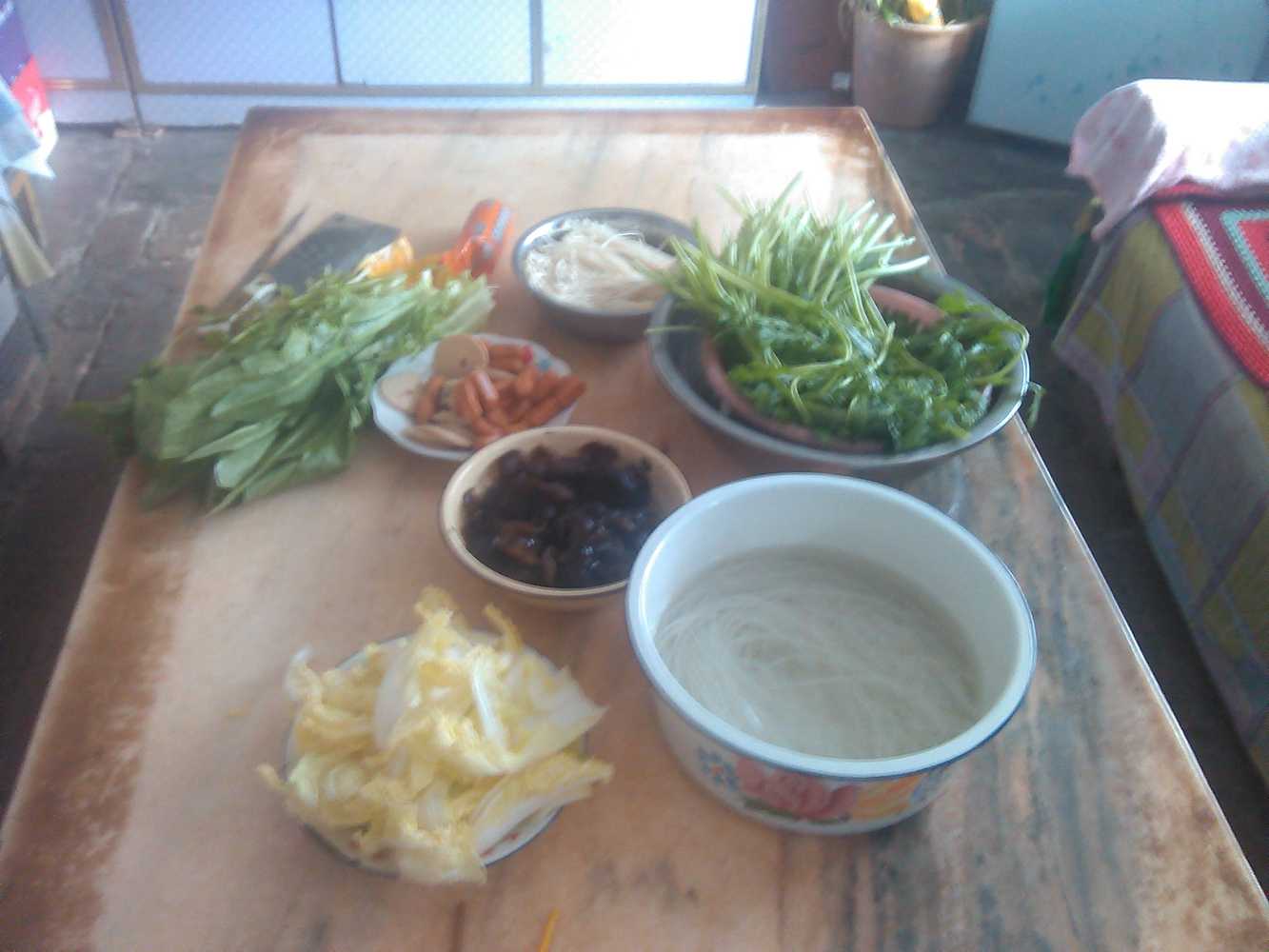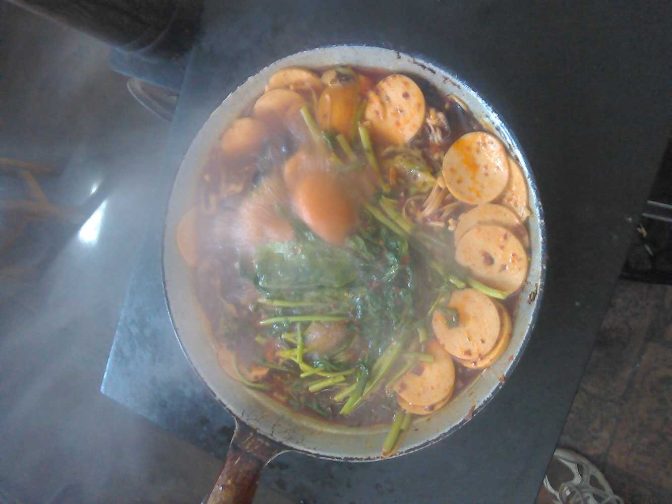 说着妈妈又开始洗菜了,我对妈妈的话半信半疑。接下来妈妈就用水一遍遍的清洗蔬菜,看来家里的果然是卫生多了。清洗完蔬菜后,妈妈往锅里倒上鸡汤,然后又放上火锅底料。等汤沸腾之后妈妈就放入菜。