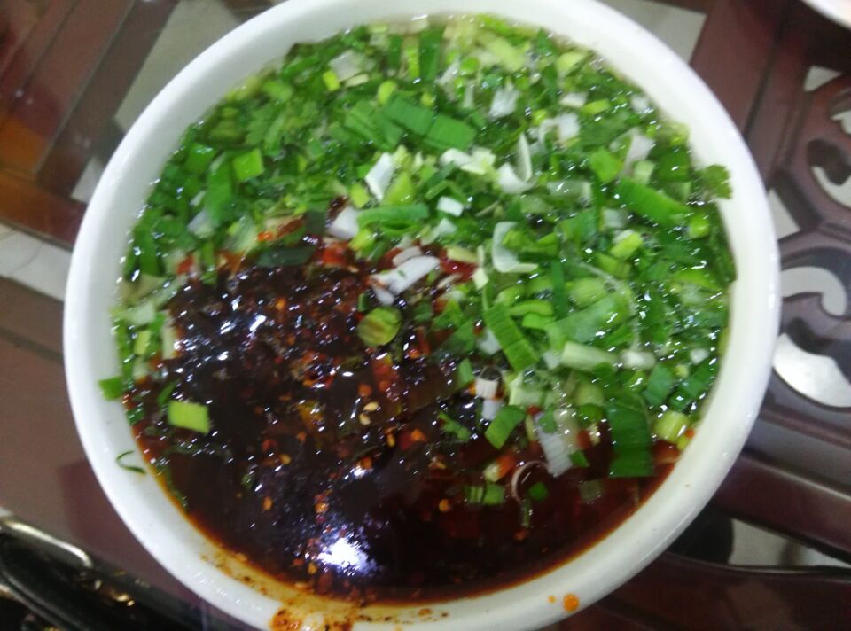 西北人喜食辣,食兰州拉面不放辣椒不是地道的吃法。兰州拉面的辣椒也是很有讲究的。要保持汤清,就不能直接放入辣椒面,否则辣椒面会将汤染红,就不成清汤了。辣椒必须先用温油炸到一定火候,炸成红油红辣椒混合成的东西。火候不到,油没有辣味,火候过了,辣椒糊了,就成黑色,等于废品。这样的红油红辣椒放到碗里,辣椒和红油漂在汤上,不与汤相混合,汤依然是清的,而用筷子挑起面条,辣椒油附在面条上,红光闪闪,同时里面还加点芝麻进去,十分馋人开胃。