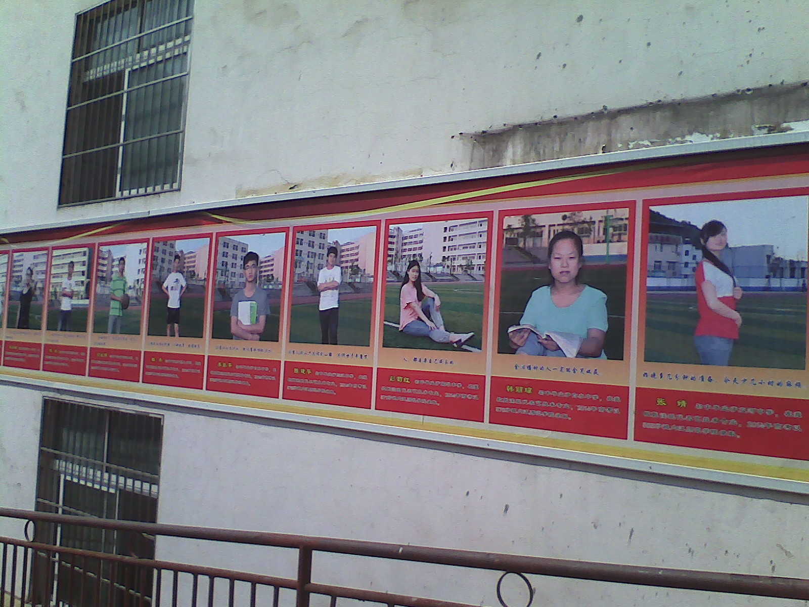 本次学校里的招生统考中,学校又获得了不错的成绩,这些照片是统考时考上本科生的学生。望着他们的照片就被这样高高挂在墙上,自己是那么羡慕又嫉妒。想想不知道自己考的时候到底会不会有这样好的结果,大学生活对于我来说,是一件没有比这更加值得可庆的事了。 可是,完全沉浸在羡慕别人的份上,还不如就此时努力,到了最后,也会有如此的成功。