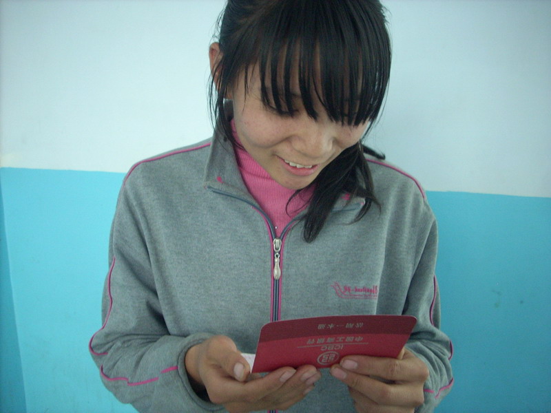 今天,老师把我叫到办公室说:"黄晓芳,你的400元资助金到了,你去银行查一下。"我听到这个消息兴奋极了,我心想:从现在起要更加的努力学习,要对得起关心和资助我的所有人。看着鲜红的存折,心里乐滋滋的。