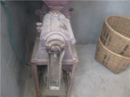 我家有一台打米机,顾名思义就是能把谷子打成米的机器。它是红色的,它右边可以打米,左边可以把玉米磨成粉。它们两个各站一边,而发动机就装在一个长方体框架里,用皮带连接它们。