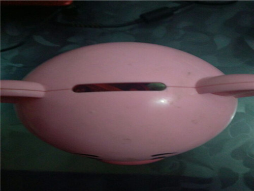 最好看的是,它身上穿着的大衣,那件大衣是粉红色的,它的背上有一个一字型的口子,啊,它是个可爱的储钱罐。