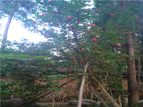 风雨中,石榴花也不曾屈服过。它迎着狂风,迎着暴雨,每次被大雨压下枝头又顽强地"站"了起来。秋天,石榴花变成累累果实。冬天虽然枝叶凋零了,但她多姿的躯干又变成了美丽的"盆景",给我又一个无尽的想像。
