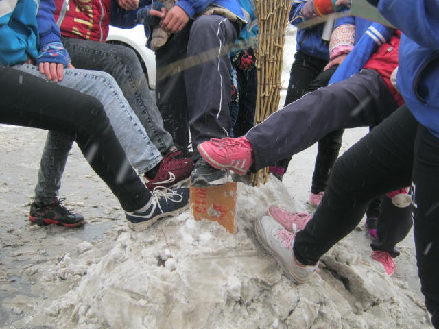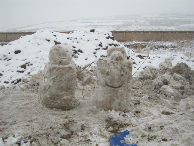 星期一,我们全班同学都要把自己的环境区域里的雪扫掉。我们在扫的过程中,玩起了雪,堆了很多形态各异的雪人。老师也很和蔼,大家都非常高兴。