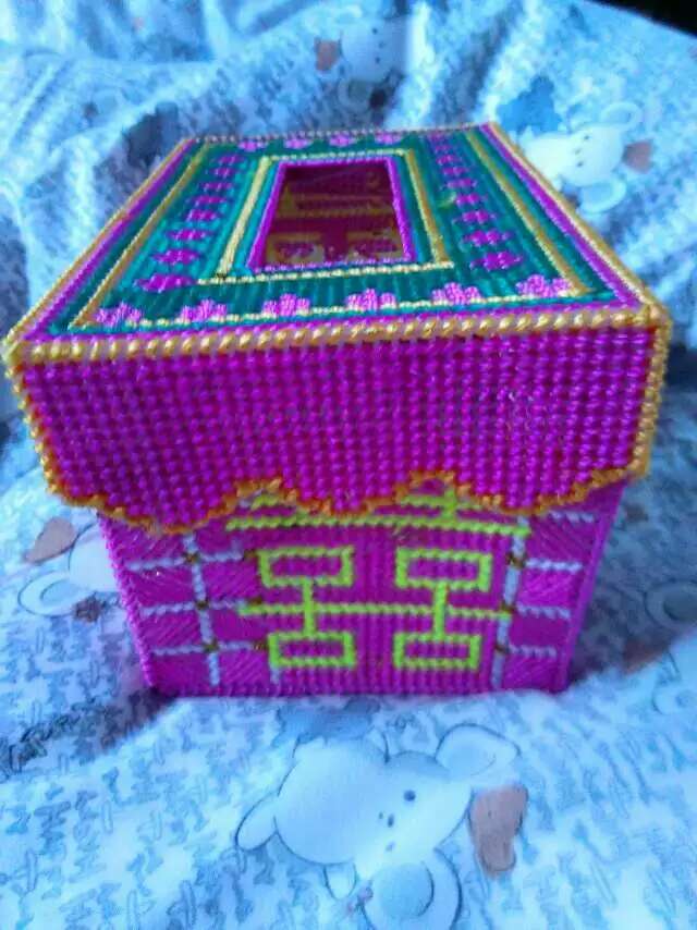外婆做工艺品是非常快的。他做抽纸盒,并不像一般的人,忙东忙西的找材料,而是一副放松地样子,慢慢地去找材料,很自然地拿起针绣起来,不一会儿,就修出一个五颜六色的抽纸盒。