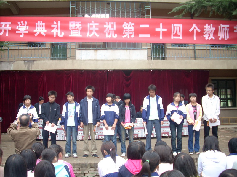 金秋十月,艳阳高照,彩旗飘展。带着喜悦与振奋之情,我们迎来了阳中2008年秋季新生开学典礼.我校党委书记荆建民,校长宋过兵,副校长李现本,主任田生荣在主席台上就座。