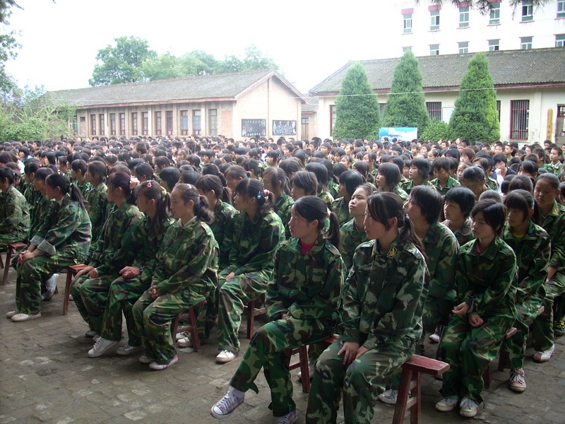 大会由李现本副校长主持,首先全体师生起立,在庄严肃穆的国歌声中,我们感受到了回到学校这个大集体中的温暖.台下全校1200多名学生整齐有序就座.身着迷彩服的这些高一新同学格外引人注目.他们刚来到这个新环境中,感到一切都很新鲜.