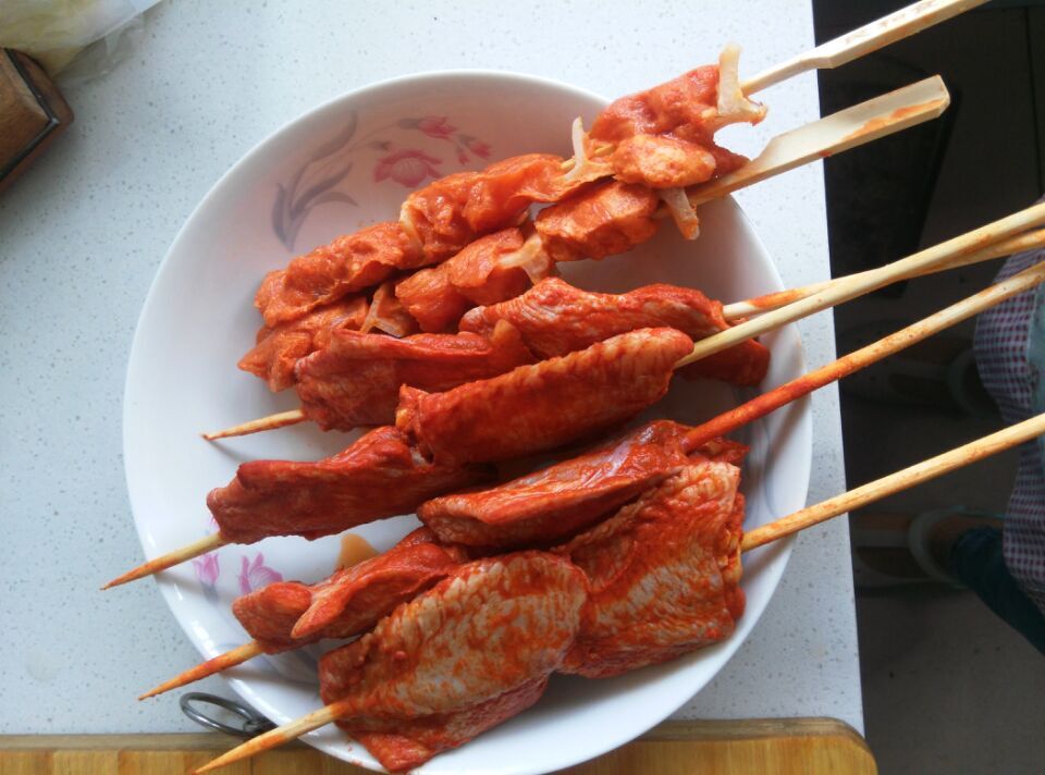 今天下午,我和陈延瑞约好了要去楼底下烧烤,于是我和妈妈便把事先买好的鸡翅串好,拿到楼底下烧烤。
