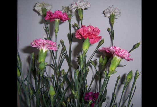 春风吹过来了,在空气里我闻到了康乃馨的香味。一株株康乃馨像一个个彬彬有礼的少女,有的好像很害羞,有的好像很娇气,有的好像还在对我撒娇。