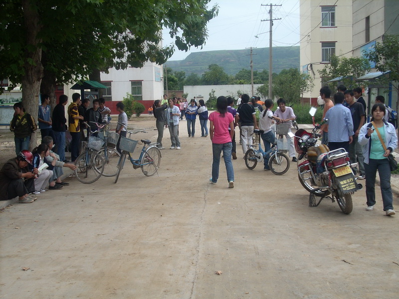第一天报名的人挺多的,许多新同学由于第一次来学校,并且来的时候还要携带被褥,所以许多家长都骑着摩托车把孩子亲自送来,孩子报名时,家长也帮助他们拿着行李跑前跑后。