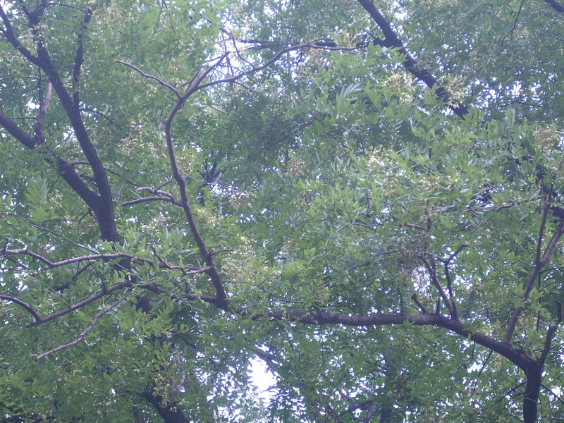老槐树一般都很高大,而且花是开在树枝顶端的,要摘到“槐籽”很费劲。我把镰刀绑在竹竿上,有时还要爬上树干才可以够到。因此肚皮上,胳膊上时常留下一道道血痕。这样很危险,所以建议大家不要爬树,够不到就别够。可是人们有时看到上面的又多又好,忍不住还是要爬上去。