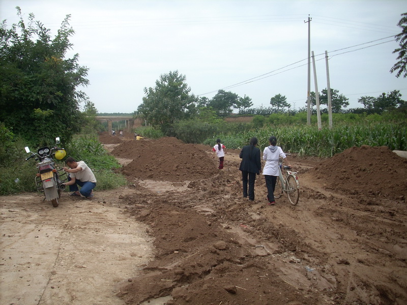 今年9月份,终于看到有许多机器在这里开始施工修路了。开始一段时间,只见许多卡车不停的拉土,那期间,满路的尘土飞扬,整天车声轰鸣。路上堆满了土队子,客车不能通过了,于是曾一度有许多摩的在这里运送乘客。那一段时间里,人们焦急地盼望着路能够早日修好。快点结束痛苦的旅程。