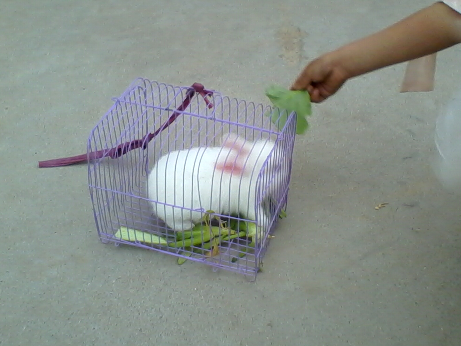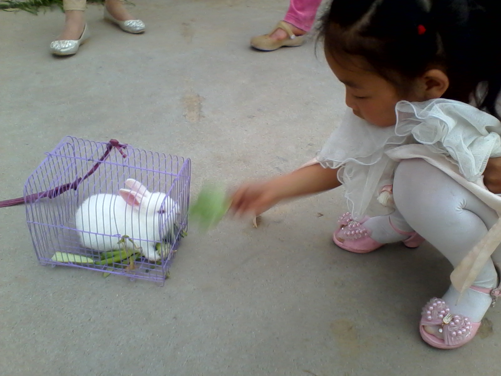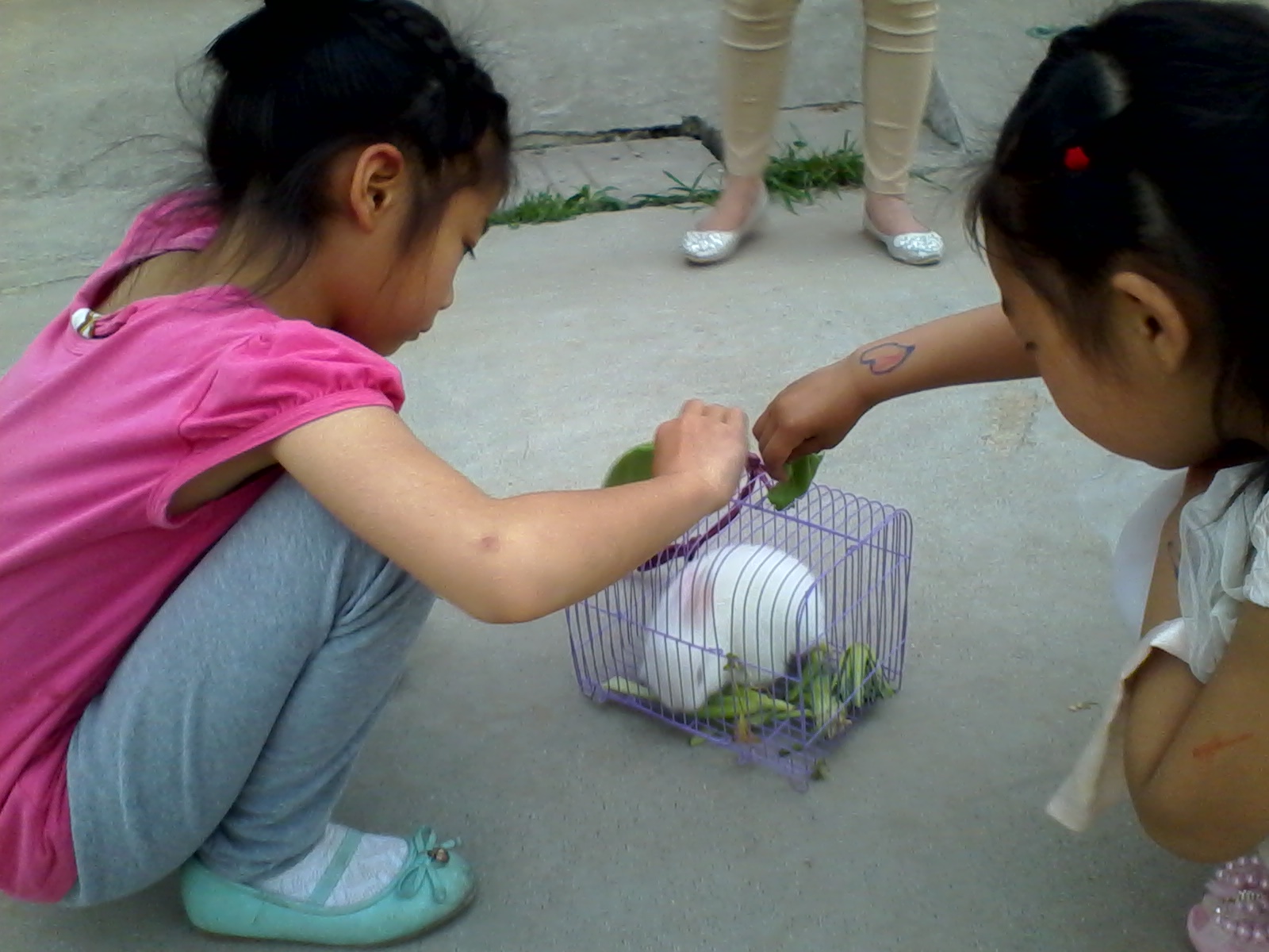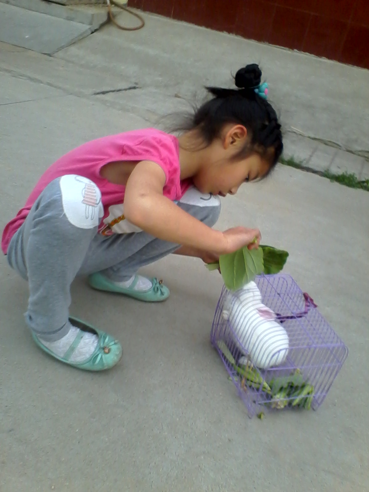 我们为的时候,看着它的三瓣嘴不停的在哪里动着,非常可爱!开始小兔吃得非常快,可是渐渐的它就不吃了。我想可能是它已经吃饱了,我们就把把它放回家。