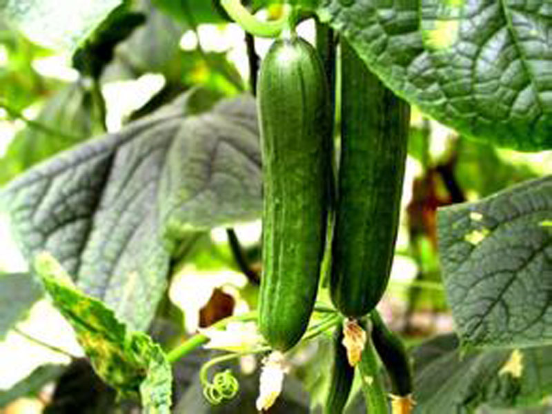 我在黄瓜藤蔓的底下,把叶子翻开找了找,还发现了两条黄瓜。大的黄瓜因为下面的空间没有了,所以就卷了起来,就像一个弯弯的月亮一样。下面那条弯曲的黄瓜,我用手摸了摸,它是干的。因为它上面的叶子长得很大很茂密,把雨水都挡住了。还有一根小黄瓜,如果你把身体倒过来看,就像一个"6"字。嘿嘿,我爱黄瓜,更爱吃黄瓜。