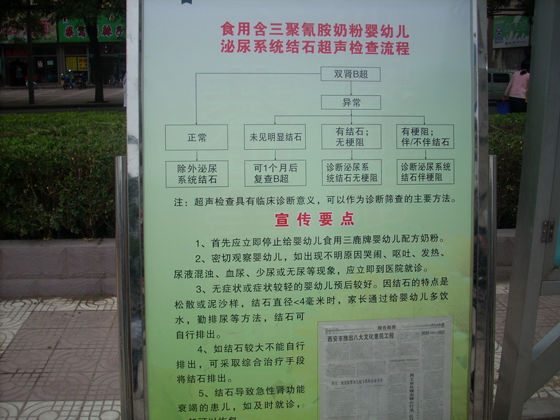 国家对这起事件高度重视,一方面,责成有关部门追究责任人,另一方面,卫生部也对对全国各大小医院提出要求,免费对辖区内的食用含三聚氰胺奶粉的婴幼儿进行诊断和治疗.我们渭南市区的大小十几家医院都开设了专门的门诊,前来诊断的婴幼儿非常多.许多医院由于医疗检测设备有限,都满足不了每天太多的人们.