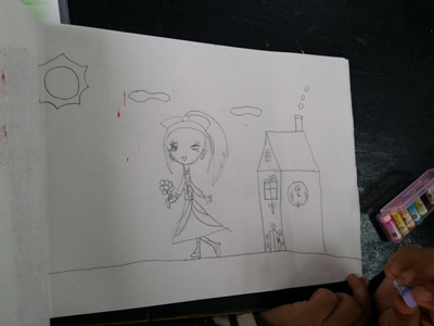记得上个星期二的中午,我画了一幅妹妹的图像,我让妈妈看。妈妈说:"画得不错呀!"妈妈又拿给爸爸看,爸爸说:"画的还蛮好的嘛!"我兴高采烈地跑到妹妹面前,问:"这是谁呀?"妹妹说:"有点像我。"我笑着说:"这就是你呀!哈哈……!"