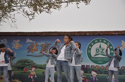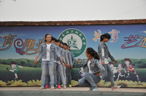 为了今天的表演我们已经排练了一个月的时间了,每天下午放学以后我们就在学校里面排练,舞蹈动作都是我们自己编排的。
