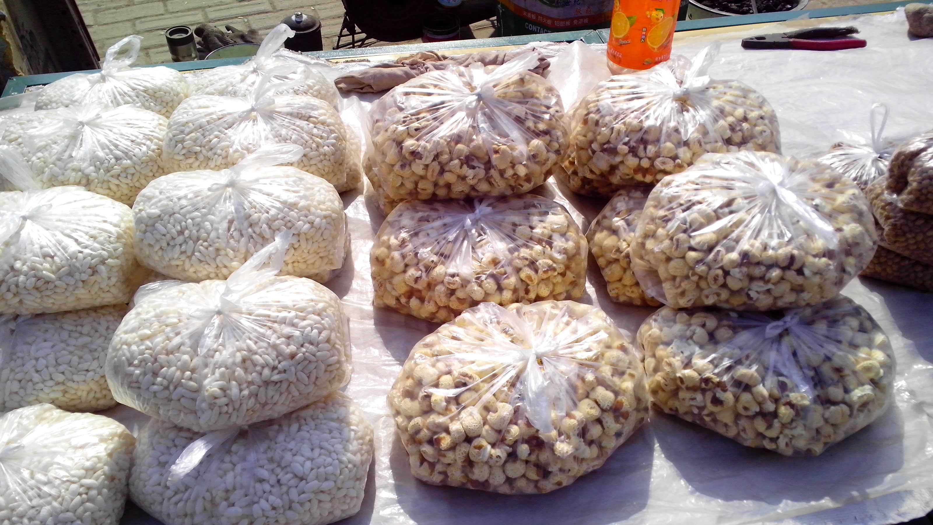 妈妈给我收拾好爆米花要带的东西:玉米、大一些的塑料袋子。我就迫不及待的出门向东门广场的爆米花地方赶去。好在今天爆米花的人不多,我就可以很快吃到玉米米花了。