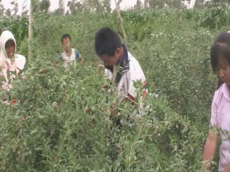 宁夏的红宝枸杞可是远近闻名,在这里,枸杞每斤可以买到14元。据老师说种植面积现已超过二十万亩,这种作物是保健品,还可以制药,枸杞奶也少不了它。就是因为有了枸杞,促进了这里的经济发展。每年到了枸杞成熟的时候,最忙的可就是摘枸杞了。男女老少都可以摘,在田里还可以交流经验,听听新闻,摘一斤枸杞四毛钱呢,像有些快手,一天能摘70斤左右。我们一放假就投入到了摘枸杞的行列了。
