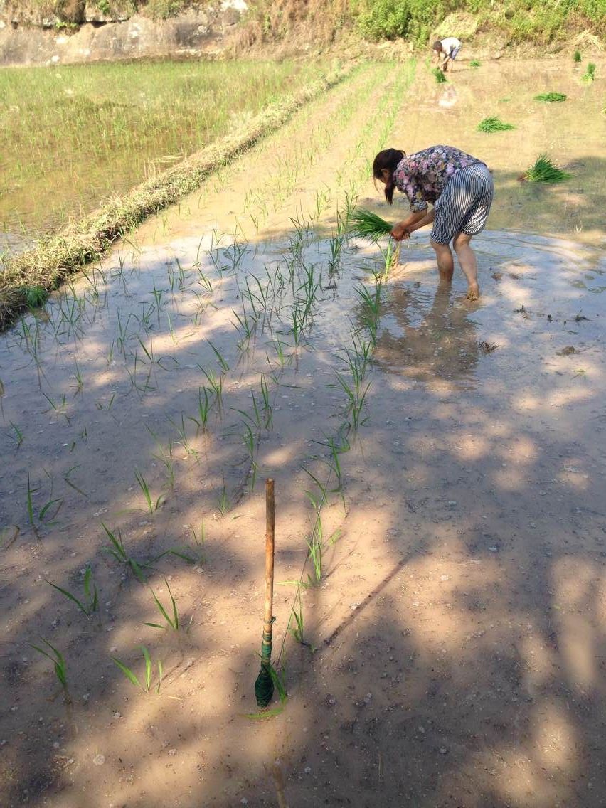 吃过午饭,便是农民们干活的时间了,他们顶着大太阳在水田里,插下一根又一根的秧苗,一滴滴的汗水随着太阳的照射滚落在秧田中,黝黑的皮肤是他们最好的见证,他们将所有的时间与精力都花在水田里,从直着腰杆插秧一直到弯着身子插秧,他们的一生似乎都与秧田度过。秧田记录了他们的酸甜苦辣,记录了他们大好的年华。