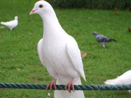鸽子的爪子上有四个趾头。它们的爪子像钩子一样尖。每个趾都是红色的。鸽子很有趣,走起路来大摇大摆的。而且脖子还一缩一缩的。眼睛东张西望。而且还一边走一边"咕咕"的叫着。如果听到一点风吹草动张开翅膀这飞到房顶上。