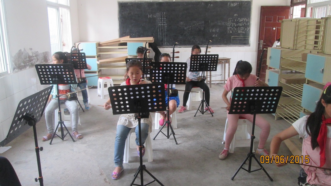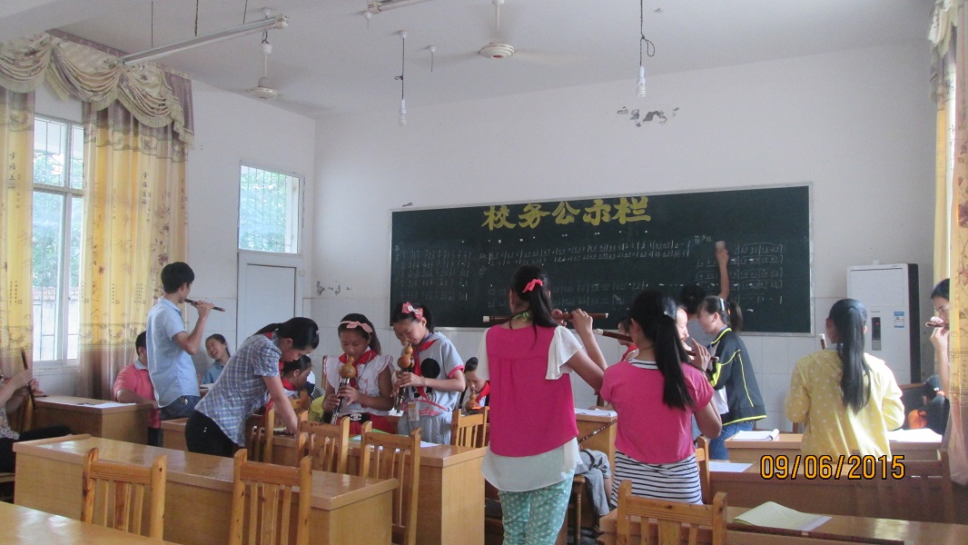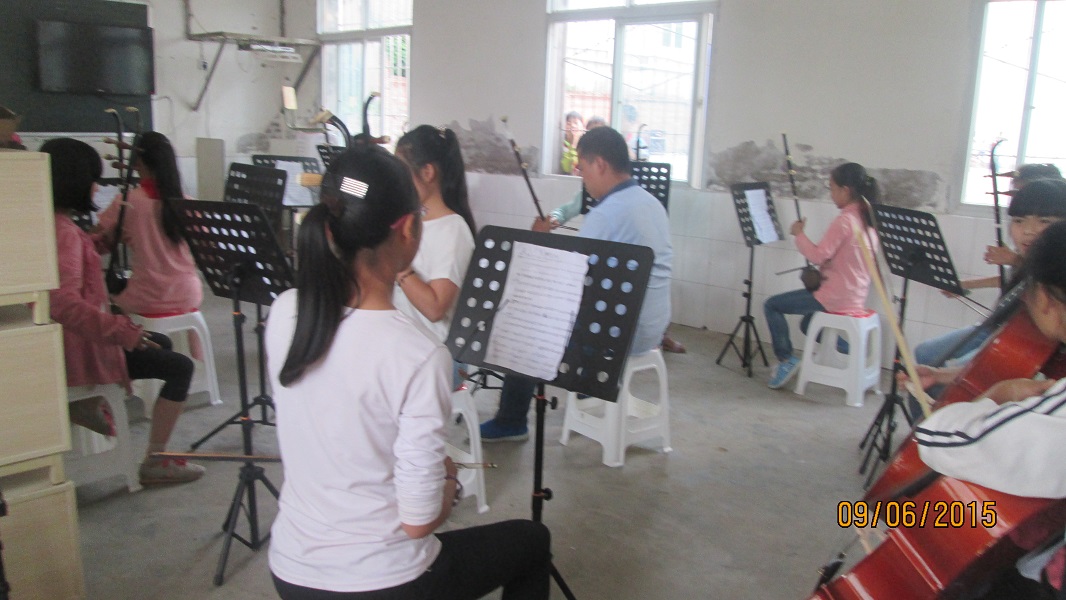 乐器有:二胡、葫芦丝、大提琴、笛子、扬琴、唢呐、大鼓等等。其中参加二胡的人最为多,他们每天第二节下课,星期二,星期四下午晚自习,第三节课都是可以去练习的,不仅只有学生,老师也要去参加训练。基本上所有老师都会去。学生、老师一起把乐器学好,也能提高自己的情趣。