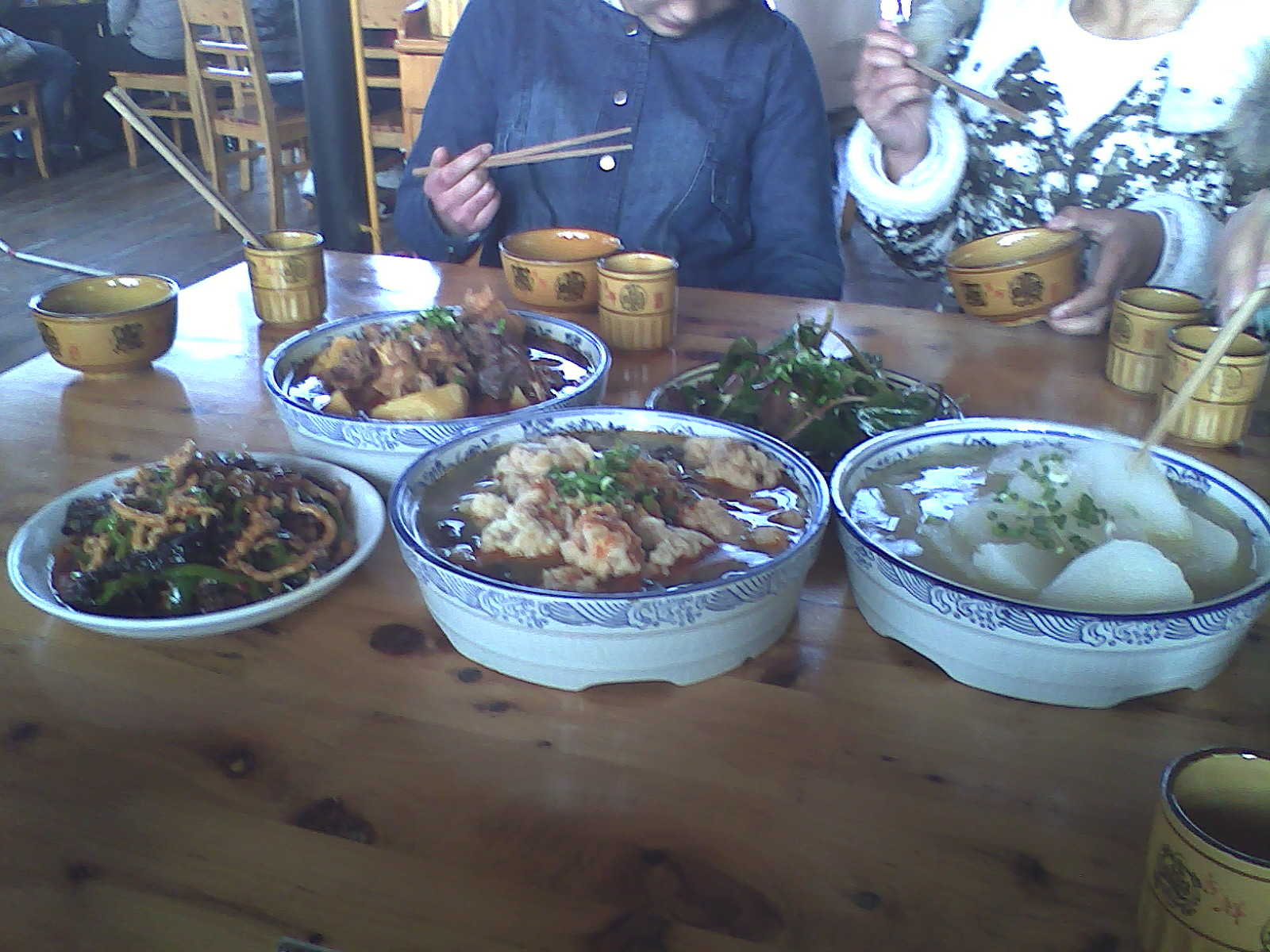 很快,中饭的时间也到了。来到这里的农家乐就是不错的选择,满满一桌子的可口的饭菜,看着就是这样的诱人,更是不用说了吃起来是否很香。 我都有些迫不及待了,恨不得现在就开始吃了,我都直流口水了喃。 也没过多久,我们都吃了起来,和老师们谈着家常话,一起有说有笑的享受这美美的饭菜。