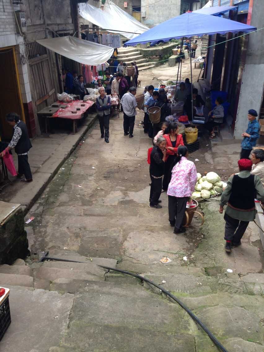 没有大城市里的喧嚣,也没有五颜六色的霓虹灯,更没有那呛人的尾气。只有农民们的一张张朴实的笑脸。当场天,他们聚集在小巷里子里,两边都是一些小商贩,他们将自家的菜摆在地上,等待着客人将它们买走。