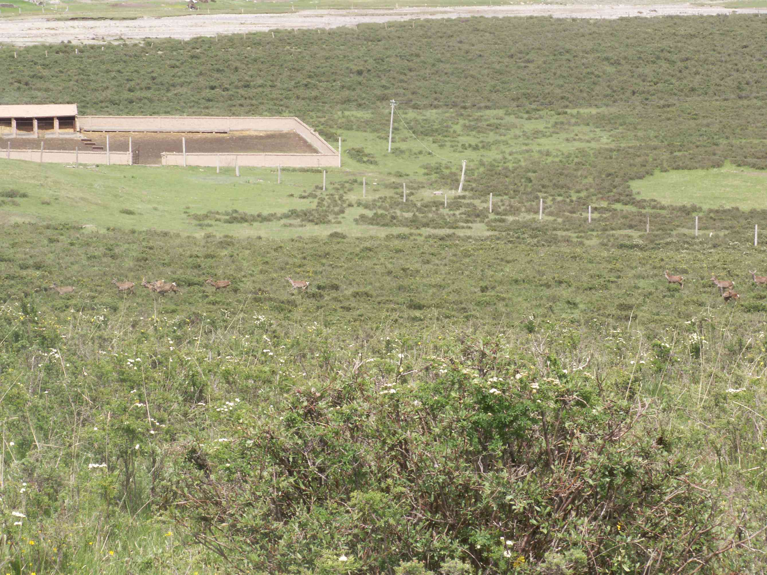 这几座房子是建在半山腰上的,院子很大,院子有一个椭圆形的场地和一些铁槽,椭圆形场地是为鹿储草用的,而铁槽是冬天喂鹿用的,管理员为这些国家的"宝贝",真可谓是尽职尽责。