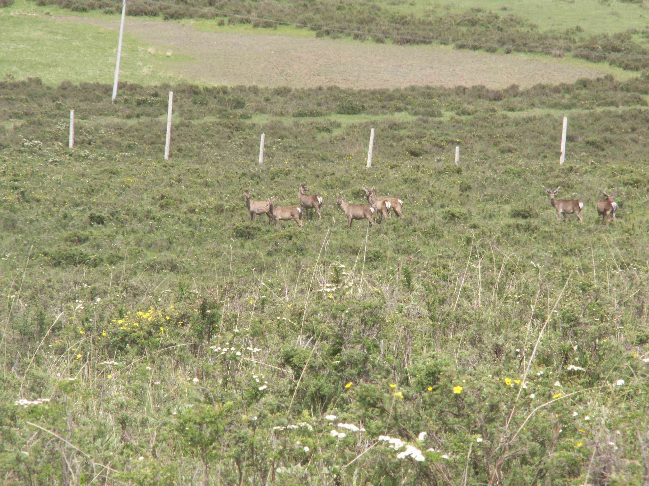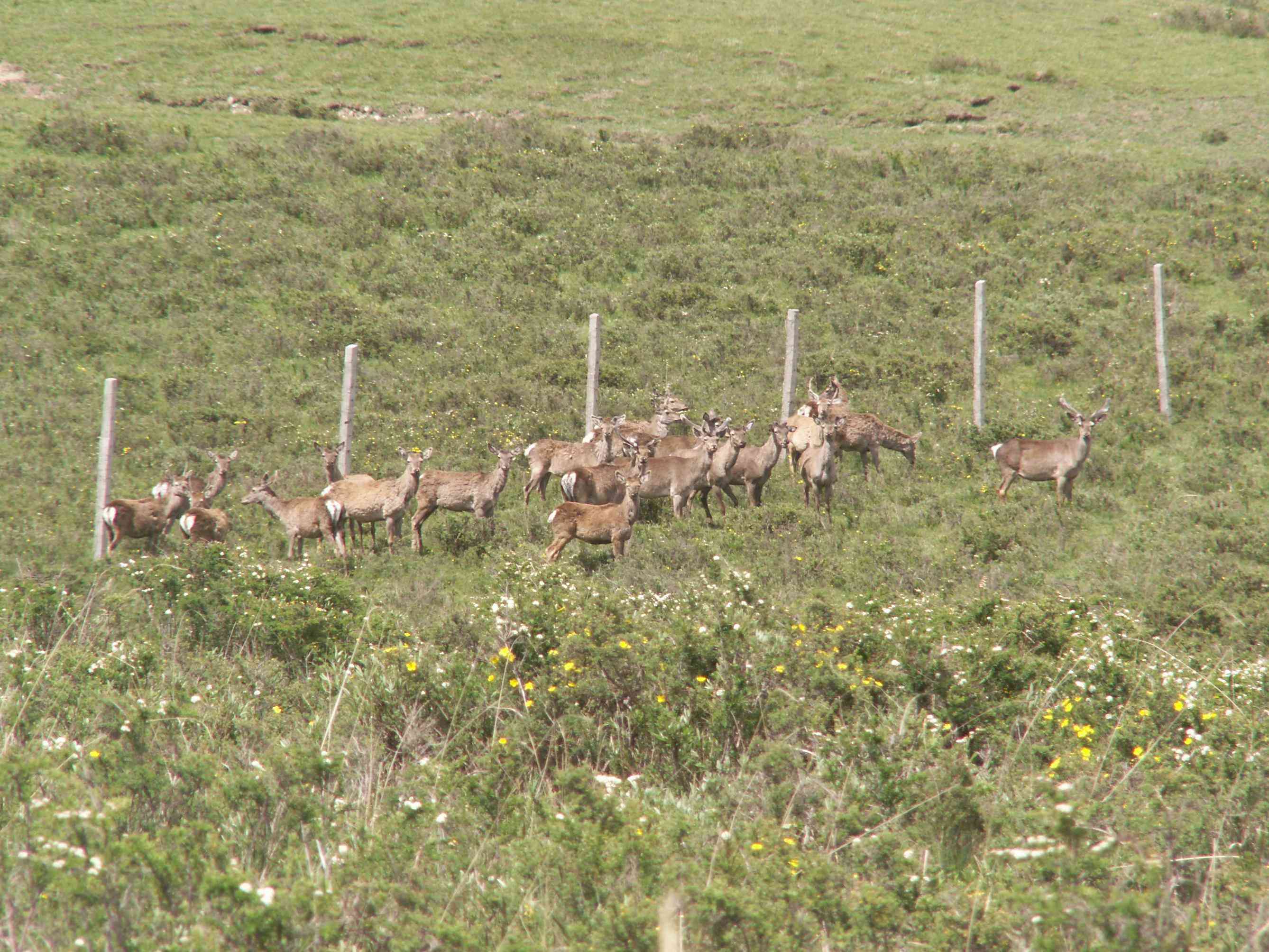 看,这群鹿有的昂首挺胸,有的低头津津有味的吃草,还有的环顾四周,以防敌人的袭击,它们是一种敏感的动物,极易受到惊吓。