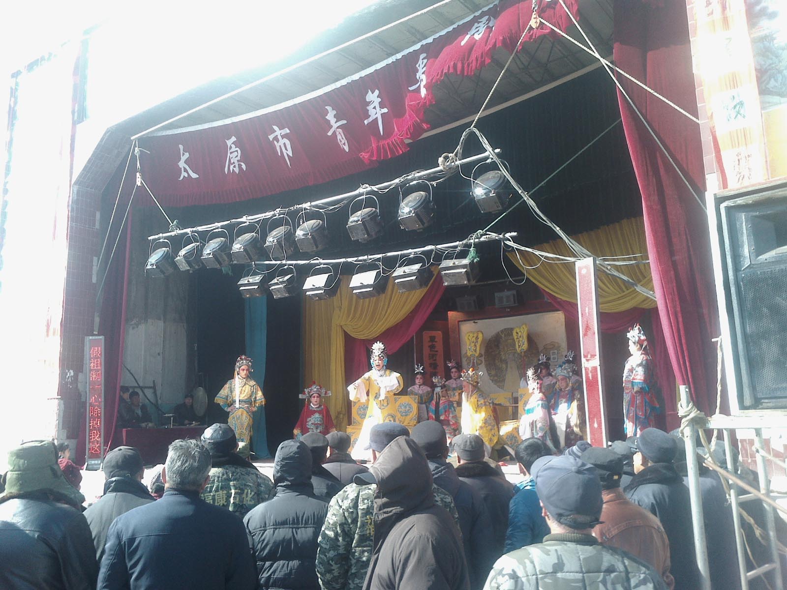 开始唱戏第一天,老天不作美,特别冷。但这没有影响人们看戏的热情,人们一个个穿得厚厚的,提着凳子早早地来到戏场占个好地方。那些前面坐的大都是老人,年轻一些的都站在后面专注地看着戏。