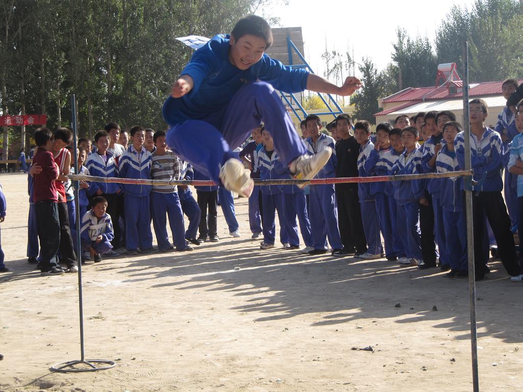 开幕式之后,比赛开始了。跳高比赛,扣人心弦,随着横杆慢慢地升高,被淘汰的人越来越多。最后,只剩下两三个人了。横杆再次升高。我们班的李俊杰奋力一跳,获得了跳高比赛的第一名,我们班的同学欢呼雀跃,掌声久久不息。跳高的运动员为了得到更好的成绩,拼尽全力,即使失败也毫不放弃。