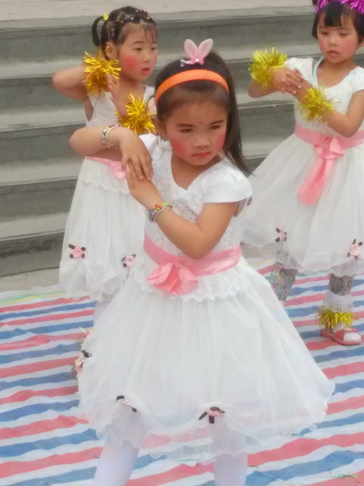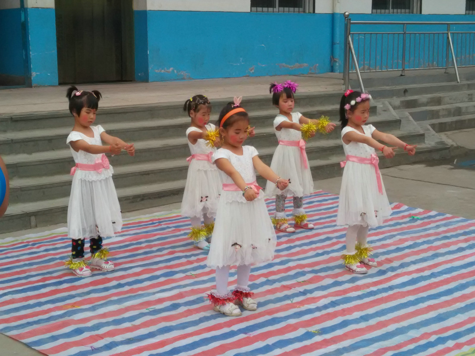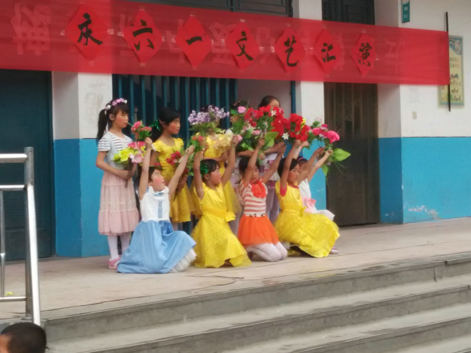 接下来小演员们身着节日的盛装,合唱、舞蹈、电子琴独奏等才艺展示好戏连台,精彩纷呈。小观众们个个兴高采烈,合着欢快的音乐,台上台下互动,节拍声、歌声、掌声不断。校园里处处洋溢着庆祝"六一"儿童节的欢乐气氛,鲜花与笑脸相映,歌声与笑声齐飞,整个校园成了一片欢腾的海洋。